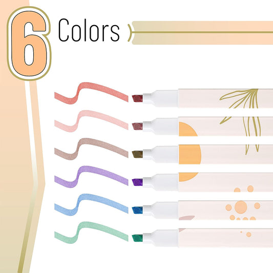 Glitter Highlighters, 8 Pack, Metallic Colors, Chisel Tip, Aesthetic & Cute Highlighters for School, Journaling & Crafts