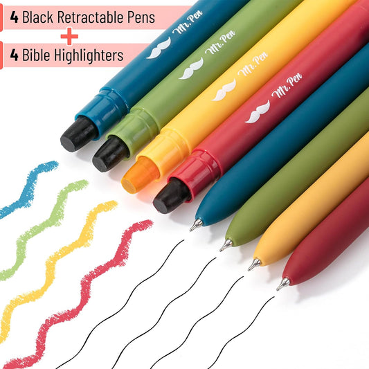 Bible Highlighters & Pens, 8 Pack, No Bleed Gel Highlighters with Black Gel Pens