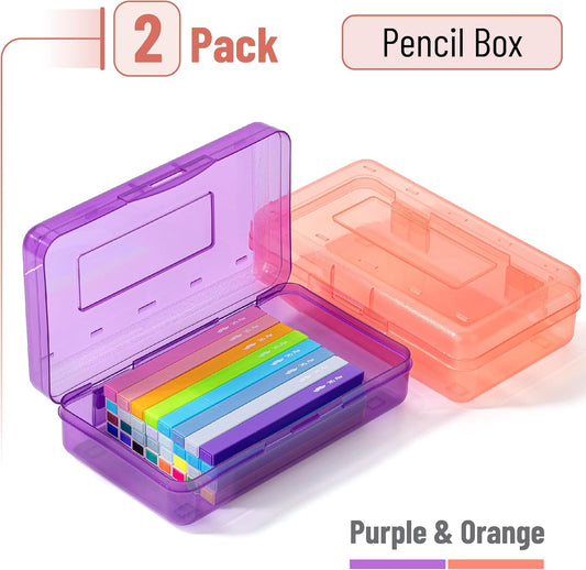 Mr. Pen- Pencil Box, 2 Pack, Purple & Orange, Plastic Pencil Box Case, Pencil Case, Crayon Box