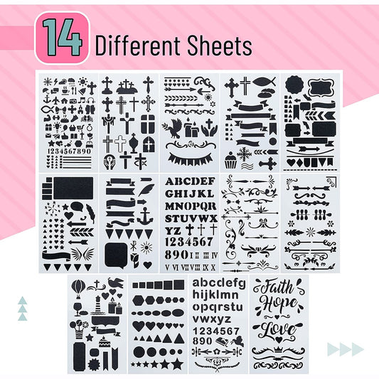 Bible Journaling Stencils, 14 Pack, 4.2 x 7 in PET Plastic Templates