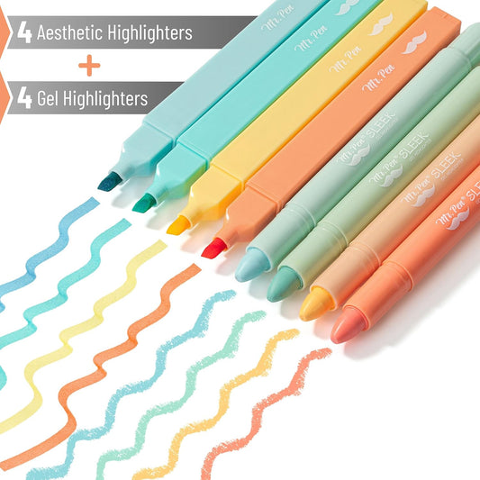 Aesthetic Highlighters and Gel Highlighters, 8 Pack, Pastel Color Bible Highlighter No Bleed, Highlighter Pens, No Bleed Highlighters for Bibles, Bible Highlighters and Pens No Bleed