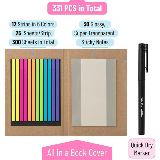 Bible Highlighter Tape, Transparent Sticky Notes with a Marker, 331 Piece Set
