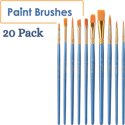 Paint Brushes, 20 pcs, Paint Brushes for Acrylic Painting, Acrylic Paint Brushes, Acrylic Paint Brush Set, Paintbrushes, Artist Paint Brushes, Brushes for Painting, Craft Paint Brushes