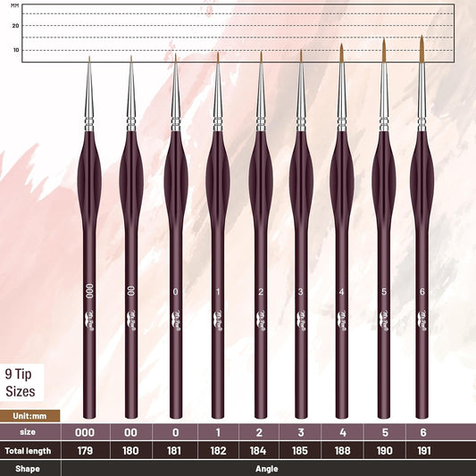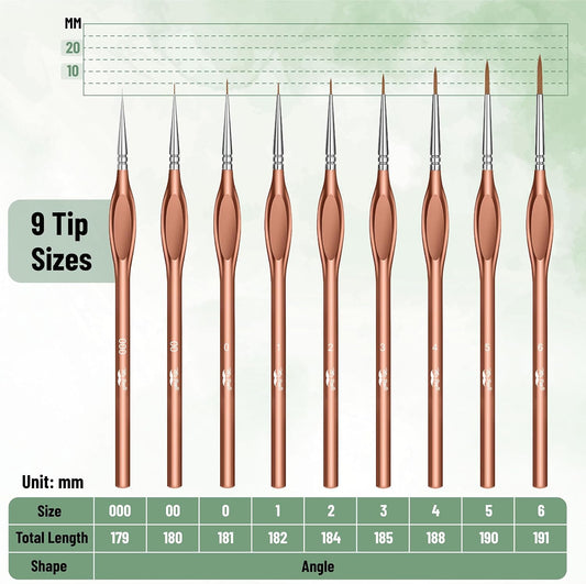 Detail Paint Brushes Set, 9 pcs, Brown, Miniature Paint Brushes, Thin Paint Brushes, Model Paint Brushes, Fine Tip Paint Brush, Face Paint Brushes Set, Mini Paint Brushes