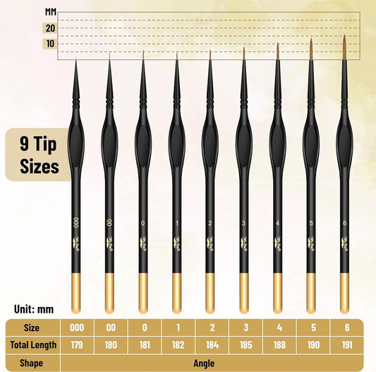 Detail Paint Brushes Set, 9 pcs, Gold/Black, Miniature Paint Brushes, Thin Paint Brushes, Model Paint Brushes, Fine Tip Paint Brush, Face Paint Brushes Set, Mini Paint Brushes