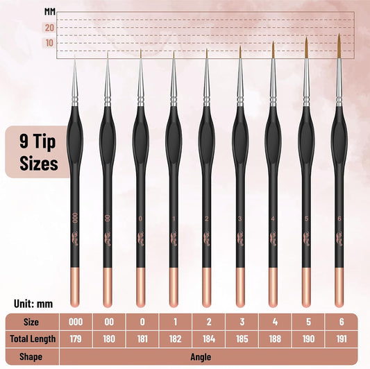 Detail Paint Brushes Set, 9 pcs, Rose Gold/Black, Miniature Paint Brushes, Thin Paint Brushes, Model Paint Brushes, Fine Tip Paint Brush, Face Paint Brushes Set, Mini Paint Brushes