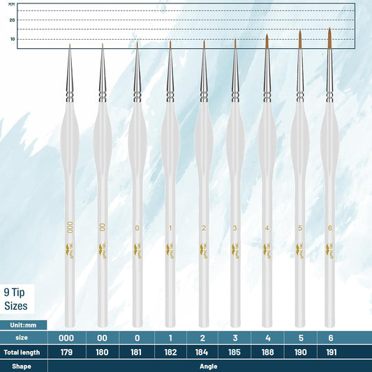 Detail Paint Brushes Set, 9 pcs, White, Miniature Paint Brushes, Thin Paint Brushes, Model Paint Brushes, Fine Tip Paint Brush, Face Paint Brushes Set, Mini Paint Brushes, Fine Paint Brush