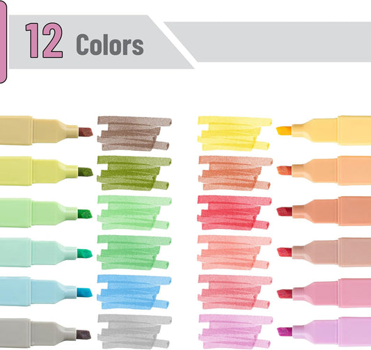 Aesthetic Highlighters, 12 pcs, Chisel Tip, Macaron Colors, Cute Highlighters Assorted Colors, Bible Highlighters and Pens No Bleed, No Bleed Highlighters for Bible Pages No Bleed