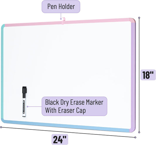 Dry Erase Board for Wall, 18” x 24”, Colorful Frame, Marker