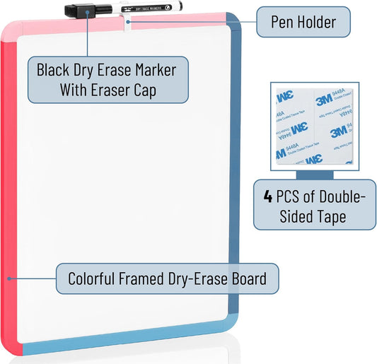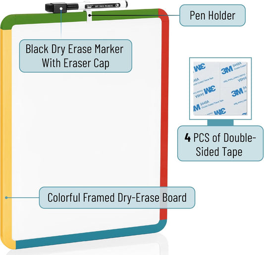Dry Erase Board, 14" x 11", Colorful Frame, Marker Included