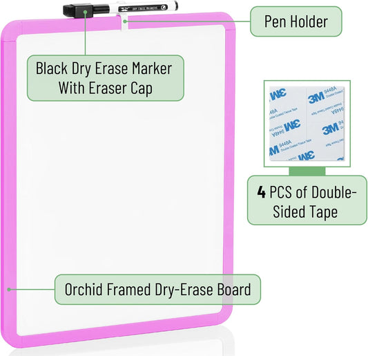 Small White Board, 14" x 11", Orchid Frame, Marker Included