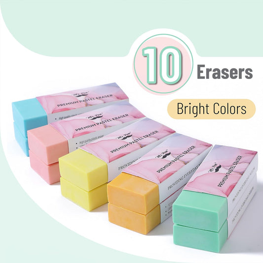 Large School Pencil Eraser, 10 Pack, Bright Colors