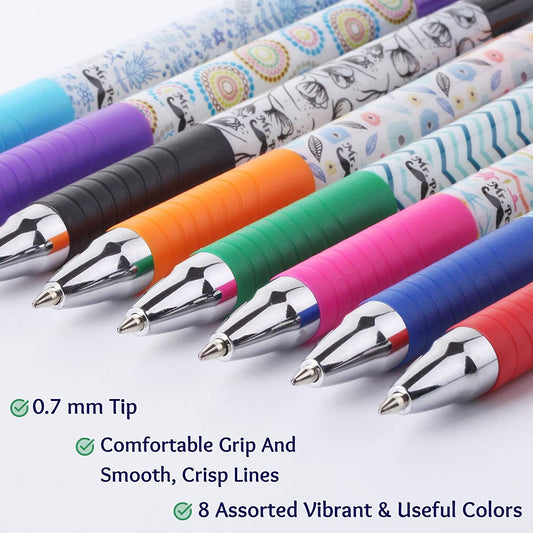 Bible Pens, 8 Pack, Assorted Colors, 0.7mm Fine Point, No-Bleed Ink