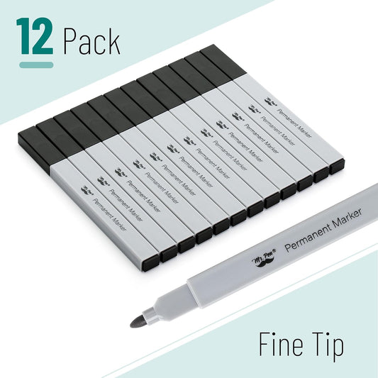 Permanent Markers, 12 Pack, Black Ink, Fine Tip, Aesthetic Square Barrel, Fade-Resistant & Smudge-Proof