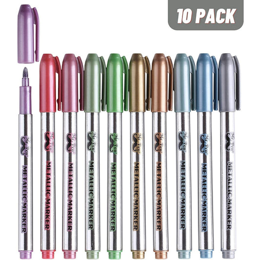 Metallic Paint Markers, 10 Colors, Medium Tip, Quick-Dry, Non-Toxic, Works on Black Paper, Crafts, Rock, Glass & More