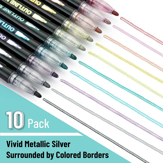 Double Line Outline Markers, 10 Pack, Shimmer Metallic Colors, Self-Outline Pens for Crafts, DIY & JournalingRegular price $5.99Regular priceUnit price per$9.99Sale price $5.99Sale