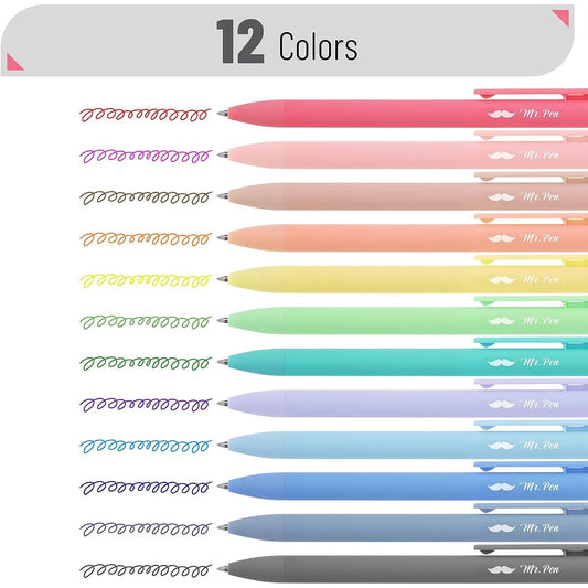Retractable Gel Pens, 12 Pack, 0.7mm Fine Point, Fast Dry Ink, Assorted Colors