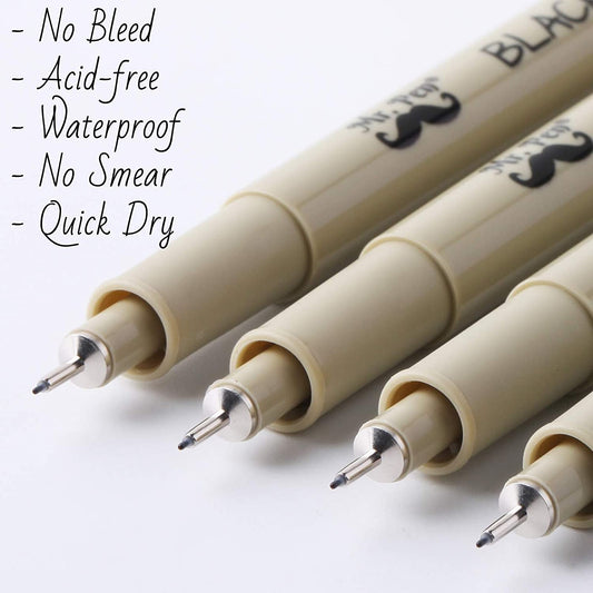 Black Fineliners 0.25mm, 4 Pack Ultra Fine Tip Pens, No-Bleed Bible Pens for Underlining, Notes & Sketching