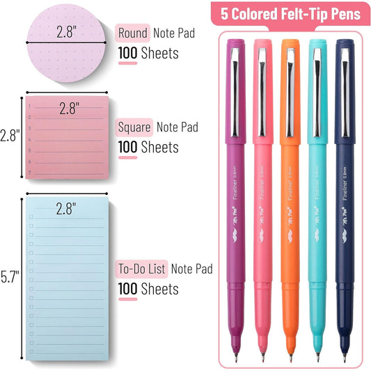 Sticky Noted Gift Box, 305 pcs, Pastel Colors, Sticky Note Set, Planner Sticky Notes, Round Sticky Notes, Square Sticky Notes, Mini List Sticky Sticky Notes, Felt-tip Pens, Note Pads and Pens