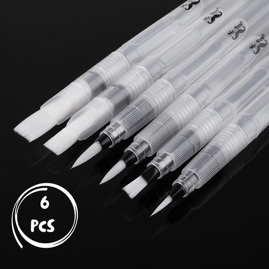 Watercolor Brush Pens, 6 Pack, Refillable Water Brushes for Painting