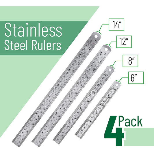 Mr. Pen Steel Rulers, 6, 8, 12, 14 inch Metal Rulers, Pack of 4
