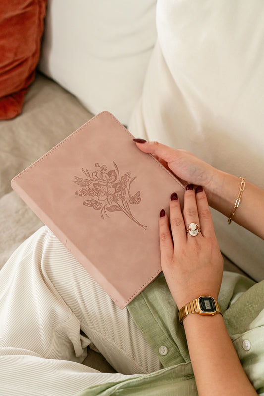 ESV Custom Single Column Journaling Bible®, Floral Hardcover with Name Box – Pink, Blue, Cream, or Marigold