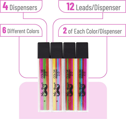 2mm Lead Refills, 48 Pack, Colored Lead Pencils 2.0 mm, Mechanical Pencil Lead, Colorful Mechanical Pencils 2mm Lead, 2 mm Lead, Pencils 2.0mm Lead, Pencil Lead 2.0 mm Refill, Lead Refill