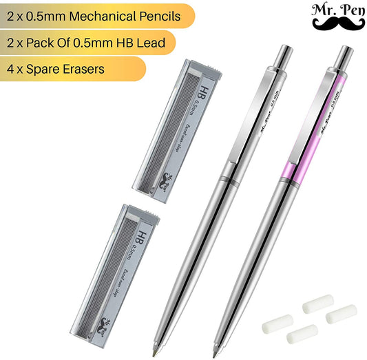 0.5 Mechanical Pencil, 2 Pack, Mechanical Pencil with Lead and Eraser, Pencil Mechanical, Artist Mechanical Pencil 0.5, Automatic Pencil, 0.5mm Mechanical Pencil, Mechanical Pencil for School