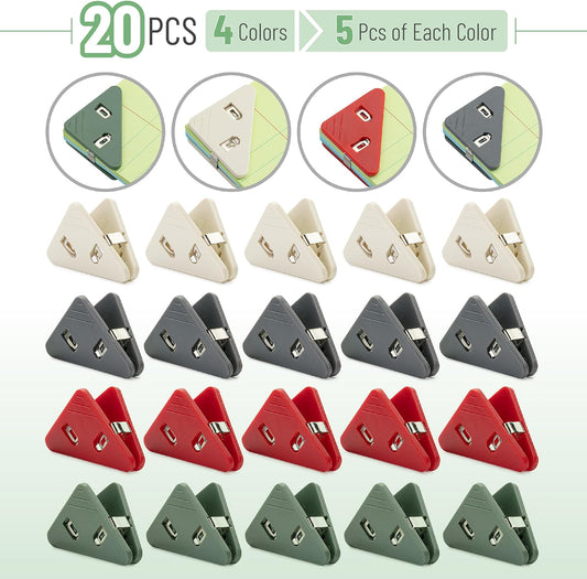 Corner Paper Clips, 20Pack, 4 Colors, Triangular File Corner Clip, Corner Clips for Paper, Triangle Paper Clips, Triangular Transparent File Corner Clip, Triangular Round Edge Document Clips