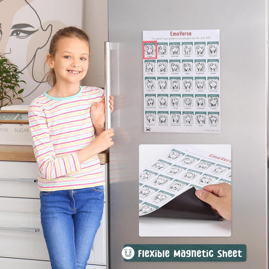 EmoVerse Magnet Feeling Chart with Bible Verse Guide, 14.5"x11.4", Emotions Chart for Kids and Adults, 30 Different Feelings