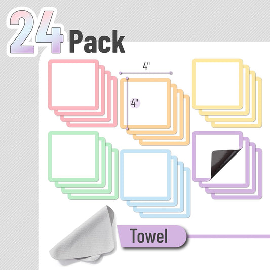 Dry Erase Magnets, 4”x4”, 24 Pack, Colorful Dry Erase Magnetic Labels, Magnetic Dry Erase Labels, Magnet Labels, White Board Magnets, Dry Erase Board Magnets, Magnetic Name Tags Reusable