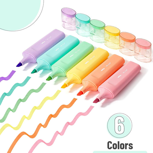 Aesthetic Highlighters, 6 Pack, Chisel Tip, Highlighters Assorted Colors, Cute Highlighters for School, No Bleed Highlighters, Highlighters Aesthetic, School Highlighters