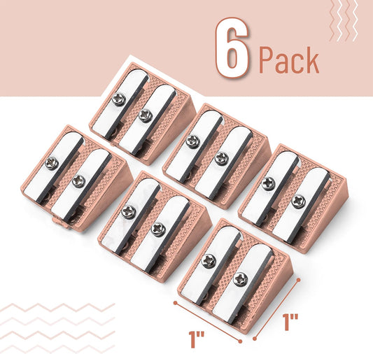 Handheld Metal Pencil Sharpener with 2 Holes, 6 Pack, Rose Gold, Colored Pencil Sharpener, Pencil Sharpeners Handheld Pencil Sharpener Manual Pencil Sharpener, Hand Held Pencil Sharpener