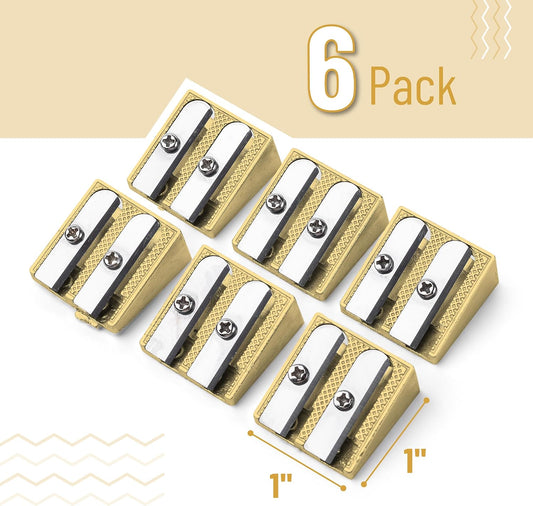 Handheld Metal Pencil Sharpener with 2 Holes, 6 Pack, Gold, Colored Pencil Sharpener, Pencil Sharpeners Handheld Pencil Sharpener Manual Pencil Sharpener, Hand Held Pencil Sharpener