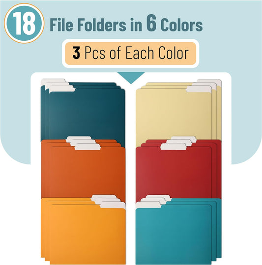 File Folders, 18 Pack, Retro Colors, 1/3-Cut Tab, File Folders Letter Size, Colored File Folders, Office File Folder, Colored Folders, Office Supplies File Folders, File Folders with Tabs