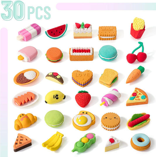Food Erasers, 30Pcs, Take Apart Erasers, Fun Erasers for Kids, Food Erasers for Kids, Mini Erasers for Kids, Puzzle Erasers for Kids, Pencil Erasers for Kids, Easter Egg Fillers