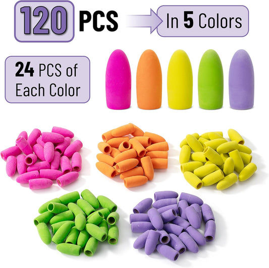Pencil Erasers Toppers, 120 Pack, Colorful, Erasers for Pencils, Pencil Top Erasers, Pencil Eraser, Eraser Pencil, Pencil Cap Erasers, Eraser Caps, Eraser Tops, Pencil Topper Erasers