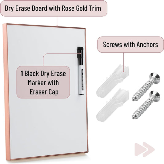 Dry Erase Board, 14” x 11”, Rose Gold Aluminum Frame with a Black Dry Erase Marker, White Board Dry Erase, Magnetic Dry Erase Board, Small White Board Small Dry Erase Board for Wall