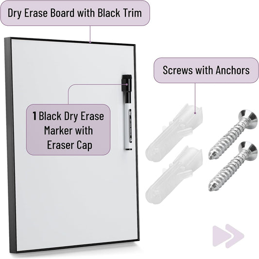 Dry Erase Board, 14” x 11”, Black Aluminum Frame with a Black Dry Erase Marker, White Board Dry Erase, Magnetic Dry Erase Board, Small White Board Small Dry Erase Board for Wall