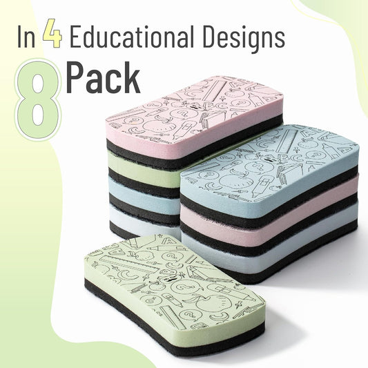 White Board Erasers, 8 Pack, Assorted Colors, Educational Designs Magnetic Dry Erase Eraser, Whiteboard Eraser, Dry Eraser, Dry Erase Board Eraser, White Board Erasers Dry Erase Erasers
