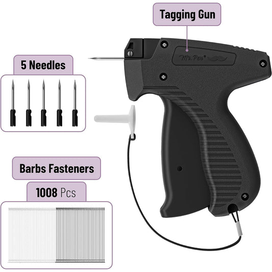 Tagging Gun, 5 Needles & 1008 Pcs Barbs Fasteners, Black, Price Tag Gun, Tagging Gun for Clothing, Tag Attacher Guns, Retail Tagging Gun, Hang Tag Gun, Clothes Tagging Gun
