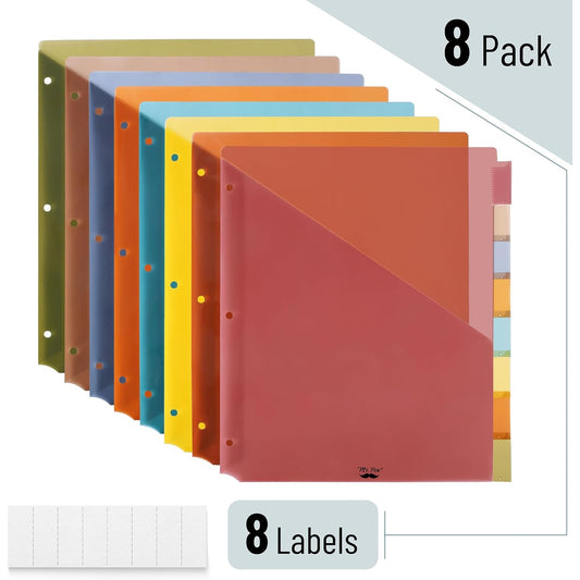 Binder Dividers with Pockets and Tabs, 8 Pack, Vintage Colors, Dividers for 3 Ring Binder with Pockets, Pocket Dividers for 3 Ring Binder with Tabs, Binder Dividers with Tabs and Pockets