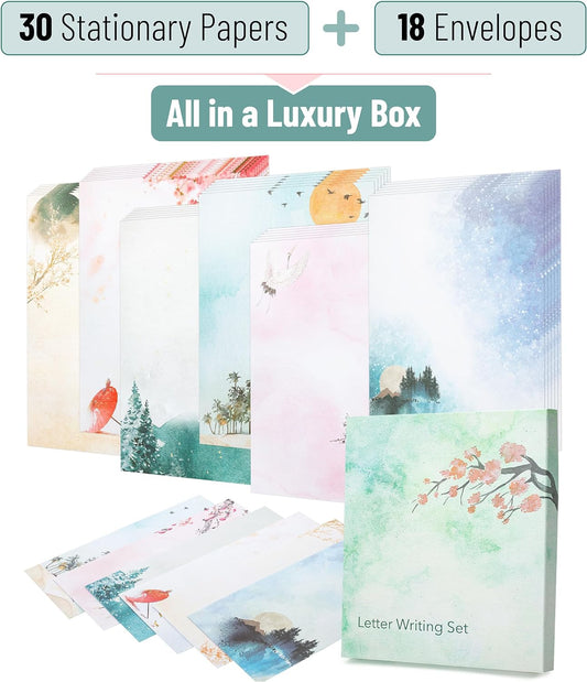Boxed Stationary Letter Paper and Envelopes Set, 30 Stationary Papers+18 Envelopes, Stationery Sets, Stationary Set, Stationary Paper, Letter Stationery Set with Envelopes, Stationery Paper
