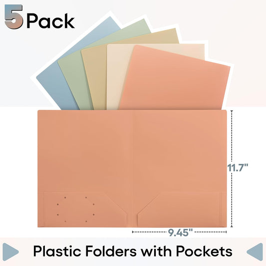 Plastic Folders with Pockets, 5 pcs, Vintage Colors, 2 Pocket Folder, Plastic 2 Pocket Folders for School Folders, Two Pocket Folder, 2 Pocket Plastic Folders, Plastic Pocket Folder