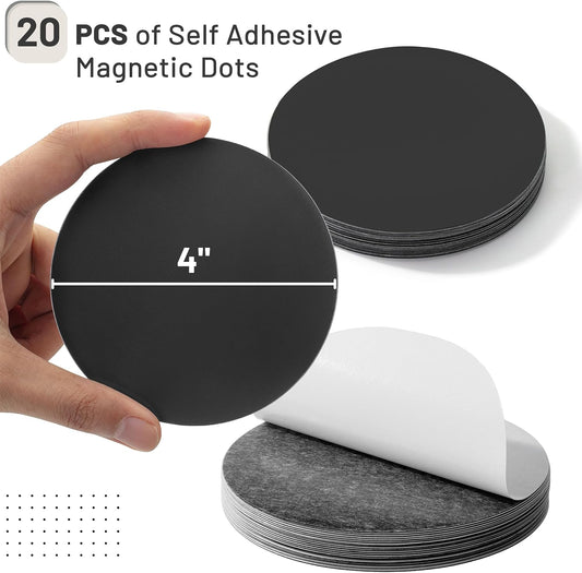 Round Magnets with Adhesive Backing, 20 pcs,4" Adhesive Magnetic Sheets with Adhesive Backing, Magnet Sheets with Adhesive, Magnets for Crafts Magnets with Adhesive Backing, Magnet Stickers