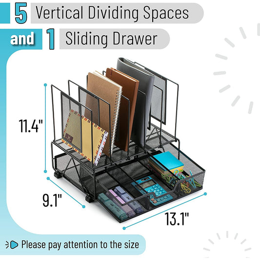 Mesh Desk Organizer with Drawer, Office Desk Organizers and Accessories, Desktop & Desk File Organizer