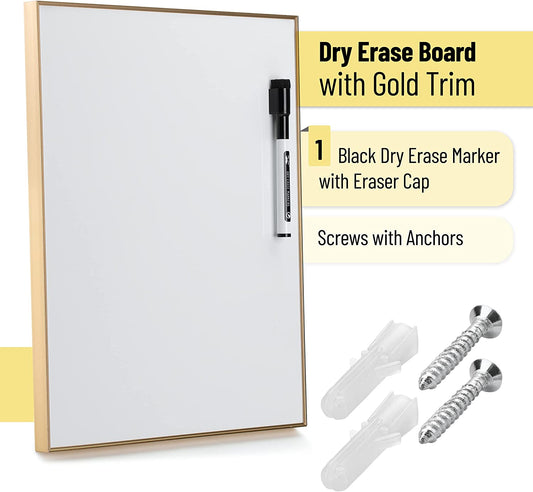 Dry Erase Board, 14” x 11”, Aluminum Frame with a Black Dry Erase Marker, Small Whiteboard, Mini White Board, White Board Dry Erase, Small Magnetic Board, Magnetic White Board