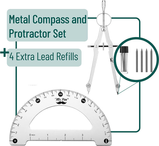 Metal Protractor and Metal Compass Set, Compass for Geometry, Geometry Set, Compasses, Protractor and Compass, Protractor for Geometry, Drawing Compass, Math Compass, Math Compass
