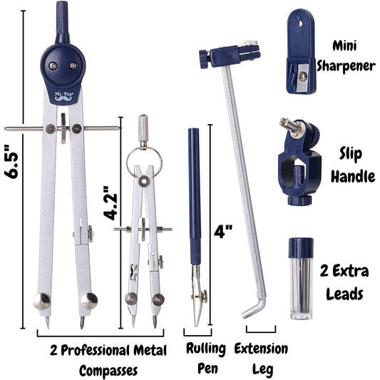 Professional Geometry Set Metal Compass, 7 pcs, Geometry Precision Tool Set with Shatterproof Storage Box, Drafting Tools & Drafting Kits, Circle Drawing Tools for Engineers Students