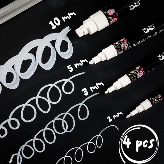 White Chalk Markers, 4 pcs, Assorted Size, Chalk Marker, Chalk Pen, Liquid Chalk Marker, Chalk Markers White, White Chalk Pen, Chalkboard Marker, White Chalkboard Marker, Chalkboard Pen